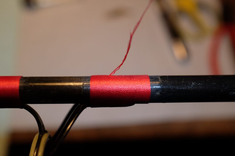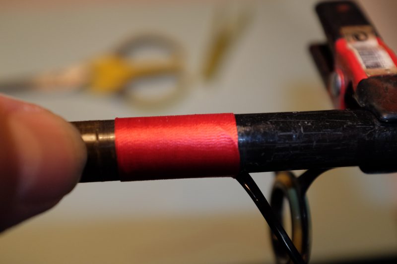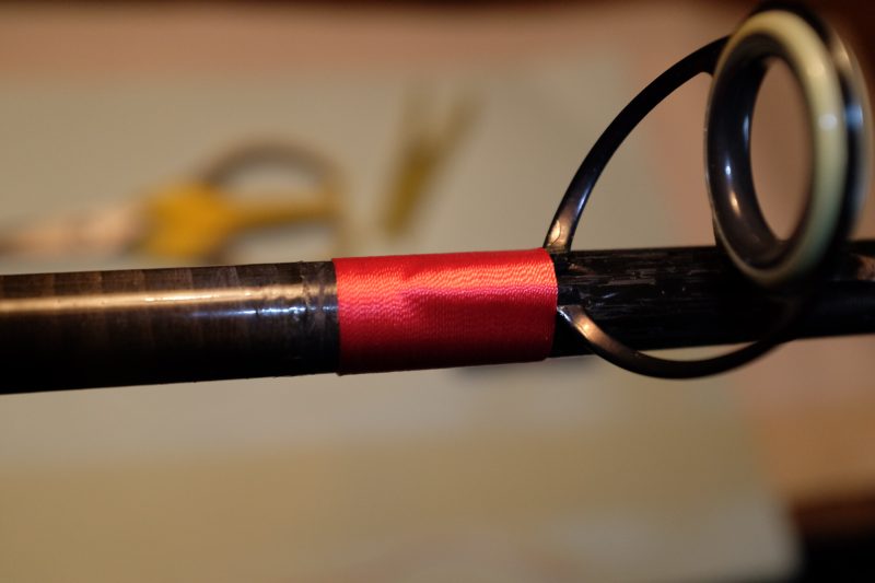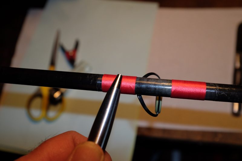We gaan nu de wikkeling controleren op spleetjes, en duwen alles mooi aan. Ook even checken dat de zijkanten mooi verticaal op de hengel zitten.